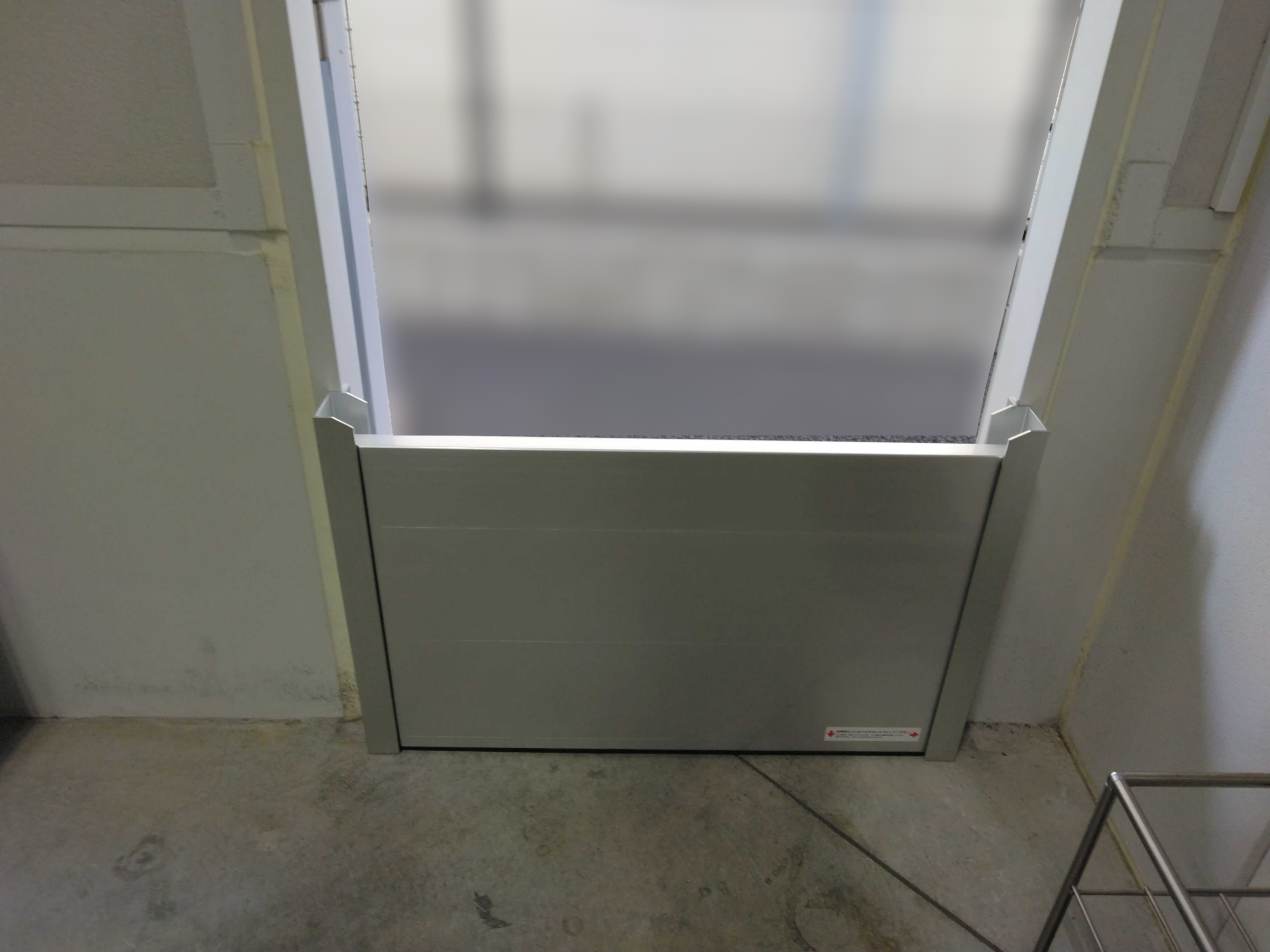 こうした状況を受け、メインの搬入出口だけでなく通用口にも抜かりのない浸水防護を施すべく、片開きドアの開口幅にぴったり収まるアルミ製止水板「水用心」を導入いただきました。コンパクトな1枚パネルで設置が完結するため、専門知識がなくても短時間で脱着でき、日常の人の出入りにも支障をきたさない運用を実現しています。