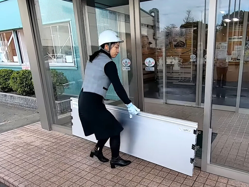 止水板とは、建物への浸水を防ぐために玄関や出入口に設置する防災アイテムです。